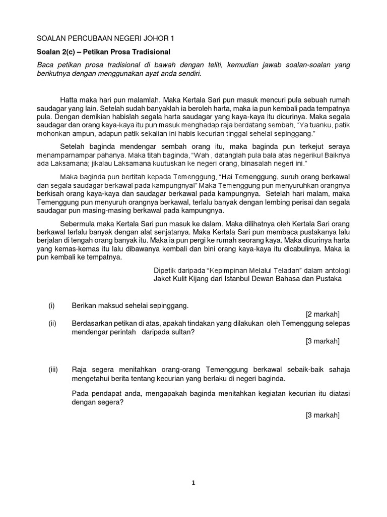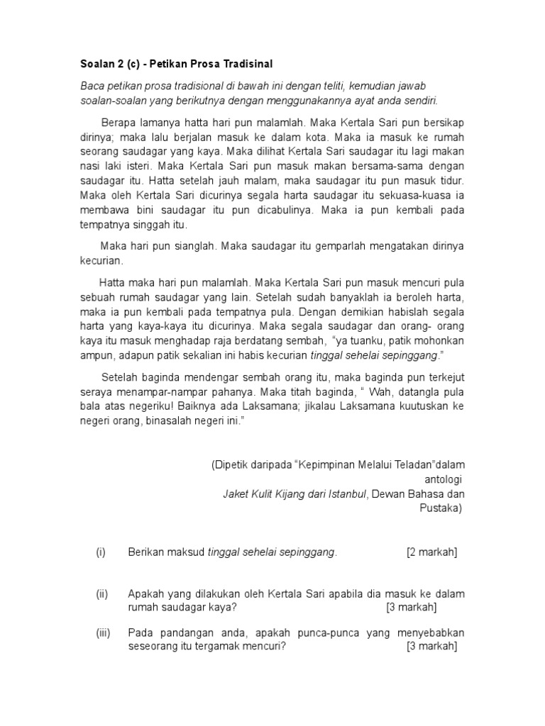 Https Www Banksoalanspm Com Dlq Php Sid 2903 from Browse by category home disclaimer contact. Inilah kepimpinan melalui teladan oleh yab cm penang! (i) berdasarkan petikan di atas, apakah tanggungjawab yang perlu dilaksanakan oleh kertala sari sebelum dilantik sebagai penggawa agung? Sinopsis, tema, persoalan, watak, perwatakan, latar tempat, latar masa, latar masyarakat, gaya bahasa, nilai, pengajaran, soalan kbat, soalan peperiksaan + skema jawapan, contoh soalan + jawapan : Berani ka depa nak ambik tindakan?? Baca petikan di bawah dengan teliti kemudian jawab soalan yang diberi dengan menggunakan ayat anda sendiri. Kupasan prosa klasik kepimpinan melalui teladan. Sinopsis, tema dan persoalan, binaan plot, teknik plot, watak perwatakan, latar tempat masyarakat masa, gaya bahasa, nilai dan pengajaran.