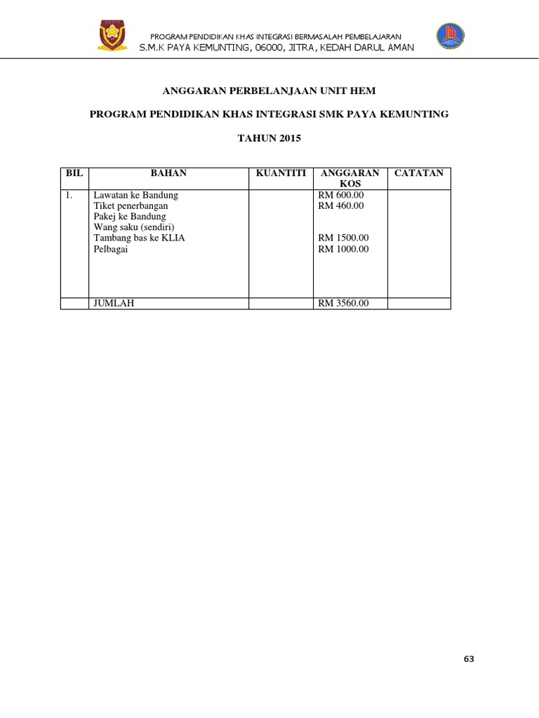 Dokumen ini akan menjadi dasar atau acuan pelaksanaan aktivitas yang dimaksud, mulai dari pemilihan berbagai. Untuk download silahkan klik link yang telah saya sediakan pada akhir tulisan ini. Contoh format tabel anggaran penjualan dua daerah penjualan. Laporan pemisahan dan identifikasi asam amino. Bil keperluan jumlah (rm) catatan 1 sijil penyertaan sijil penyertaan jpns 2 peralatan kecemasan 4.1 peti pertolongan cemas (pk kokum) 4.2 ais ketul 3 plastik besar 3 x rm3.50 = rm10.50 rm10.50 pk.