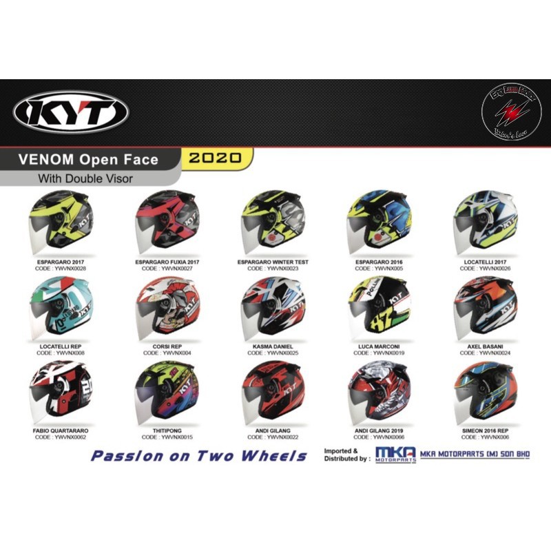 Open face helmets give the reader better visibility as their cruise on the highway. Kyt helmet official facebook fanpage. Submitted 1 year ago by gamerguywon. Kyt venom open andy gilang 2019. Full face helmets from kyt philippines enclose the rider's head.