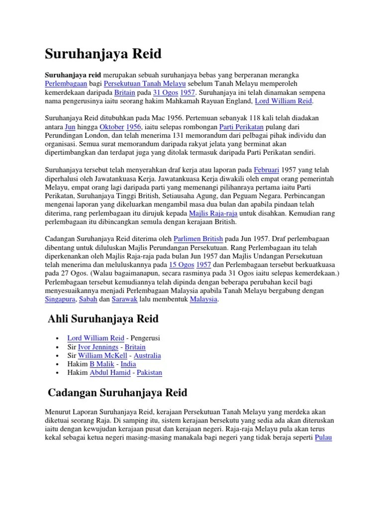 Related : Apakah Tujuan Suruhanjaya Reid Ditubuhkan? : Nota Ringkas Pdf Slide S Contents 2 : 5.3 perjanjian persekutuan tanah melayu 1957 :.