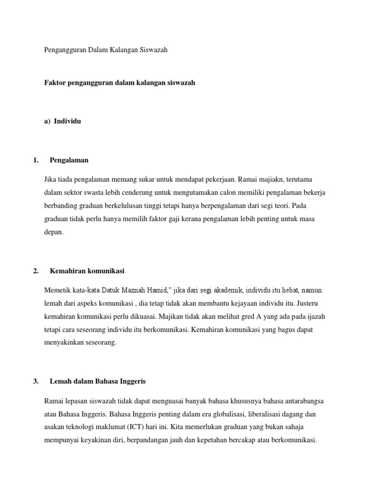 Ekonomi Tenaga Buruh Guna Tenaga Dan Pengangguran Di Malaysia Dari from image.slidesharecdn.com Kadar pengangguran di malaysia terus berkurangan. Semakin banyak lapangan kerja semakin tinggi juga. Kajian mengenai ketidakboleh pasaran siswazah malaysia: Graduan yang ada pada masa kini lebih memilih untuk bekerja dalam pejabat yang berhawa dingin berbanding bekerja di ladang ternakan. Pengangguran siswazah boleh mendatangkan kesan negatif kepada diri siswazah itu sendiri, keluarga, masyarakat, dan negara. Kadar pengangguran di malaysia untuk 2017 dijangka tidak melebihi 3.5 peratus. Masalah pengganguran dalam kalangan siswazah ipta/ipts di malaysia. Masalah pengganguran dalam kalangan siswazah ipta/ipts di malaysia.