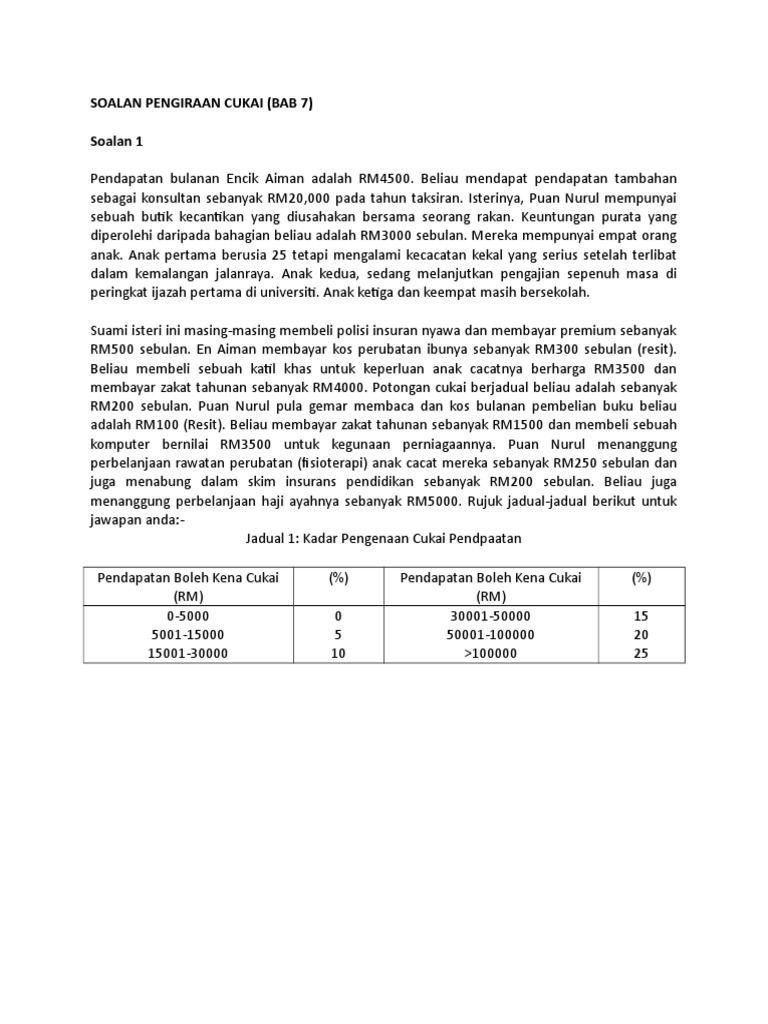 Ketua pengarah hasil dalam negeri sepertimana yang dikehendaki di bawah peruntukan akta cukai pendapatan (acp) 1967. Smsb memberikan rundingan kejuruteraan kepada syarikat arumugam pte ltd (apl), sebuahsyarikat pemastautin di india. Bagi syarikat baru beroperasi, anggaran cukai tersebut perlu dikemukakan dalam tempoh 3 bulan dari tarikh syarikat mula beroperasi contoh 1: Suami dan isteri perlu mengisi borang nyata cukai pendapatan secara berasingan; Pendapatan bercukai akan terhasil daripada pengiraan ini dan akan dikira cukai daripada nilai ini. A1 ± a12 kod perniagaan dapatkan kod perniagaan dari lampiran g buku panduan borang p. Borang yang dipermudahkan, penerangan mengenai cara mengisi borang serta panduan membuat pengiraan pendapatan bercukai dan cukai pendapatan telah disediakan untuk membantu pembayar cukai. Antara jenis pendapatan yang dikecualikan cukai adalah manfaat kesihatan dan perubatan, pampasan, pencen, biasiswa, elaun perjalanan, dividen dan royalti. Dokumen sokongan seperti rekod perniagaan, cp30 dan resit tuntutan tidak perlu dikemukakan Antara pendapatan yang perlu dilaporkan: Pengiraan cukai syarikat bemula dari penyata untung rugi syarikat. X bahagian pendapatan berkanun jumlah pendapatan daripada semua punca atau rm7,500 (x) yang mana. Hasil yang diperolehi di penyata kewangan tersebut (samada untung atau rugi) akan kemudiannya dilaraskan semula seperti yg telah ditetapkan oleh akta cukai pendapatan 1967 bagi menghasilkan pendapatan bercukai